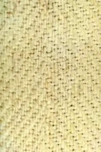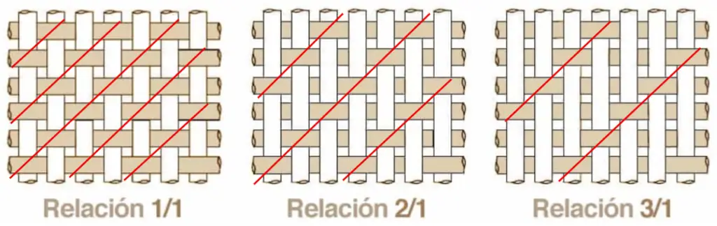 Las fibras que forman los hilos de la Síndone, están torsionadas en Z, es decir, cohesionadas en sentido horario para formar cada hilo (visto desde arriba en la sección transversal del hilo). Cada hilo tiene entre 70 y 120 fibras de lino, más finas que un cabello humano, que conforman un diámetro promedio de 0.25mm. Los hilados en la Síndone son irregulares, lo que podría explicarse en parte por una técnica de hilatura artesanal, y en alguna medida por la naturaleza misma de la fibra del lino. El tejido que forman dichos hilos es del tipo Sarga, que hace parte de las técnicas de tejido plano. Cada tipo usa un ligamento diferente, es decir un patrón específico en el que los hilos de urdimbre (verticales) se entrelazan con los hilos de trama (horizontales). En el caso de la Síndone, el ligamento es del tipo llamado Sarga, en relación 3/1 (ver Figura A), lo que significa que un hilo de trama pasa sobre tres hilos de urdimbre (como muestra la figura abajo), con un desplazamiento progresivo a lo ancho del punto de cruce. Este desplazamiento es el que genera líneas diagonales visibles en la tela. La densidad promedio de hilos por cm2 de la tela de la Síndone es 38 hilos/cm2 para la urdimbre, mientras que para la trama es de alrededor de 26 hilos/cm2, siendo estos valores superiores comparados con los de copias de la Síndone y otros textiles similares.4 Análogamente, en algunos tejidos, como el de la Síndone, existe un patrón organizativo de dichas diagonales a lo ancho de la tela, alternando periódicamente la inclinación en dos direcciones opuestas, formando un patrón similar a una espiga, como se observa en las figuras C y D.